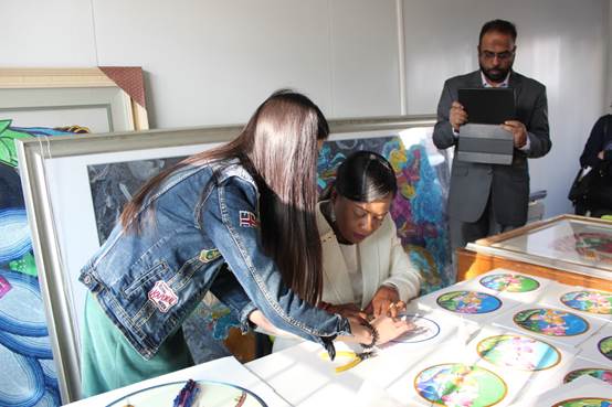 在肇梦空间,客人重点参观了taptap点点体育“大学生女子工坊”。该工坊由美术学院在校女大学生组建,专门致力于手工艺术品创作。近两年,女子工坊团队所创作的手工艺术品销售到20多个国家和地区,获得国内、国际百余奖项,申请专利和知识产权100余个。诸多作品被国内外机构、政府部门和企业收藏。