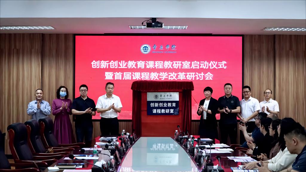 活动现场,与会领导为创新创业教育课程教研室揭牌。