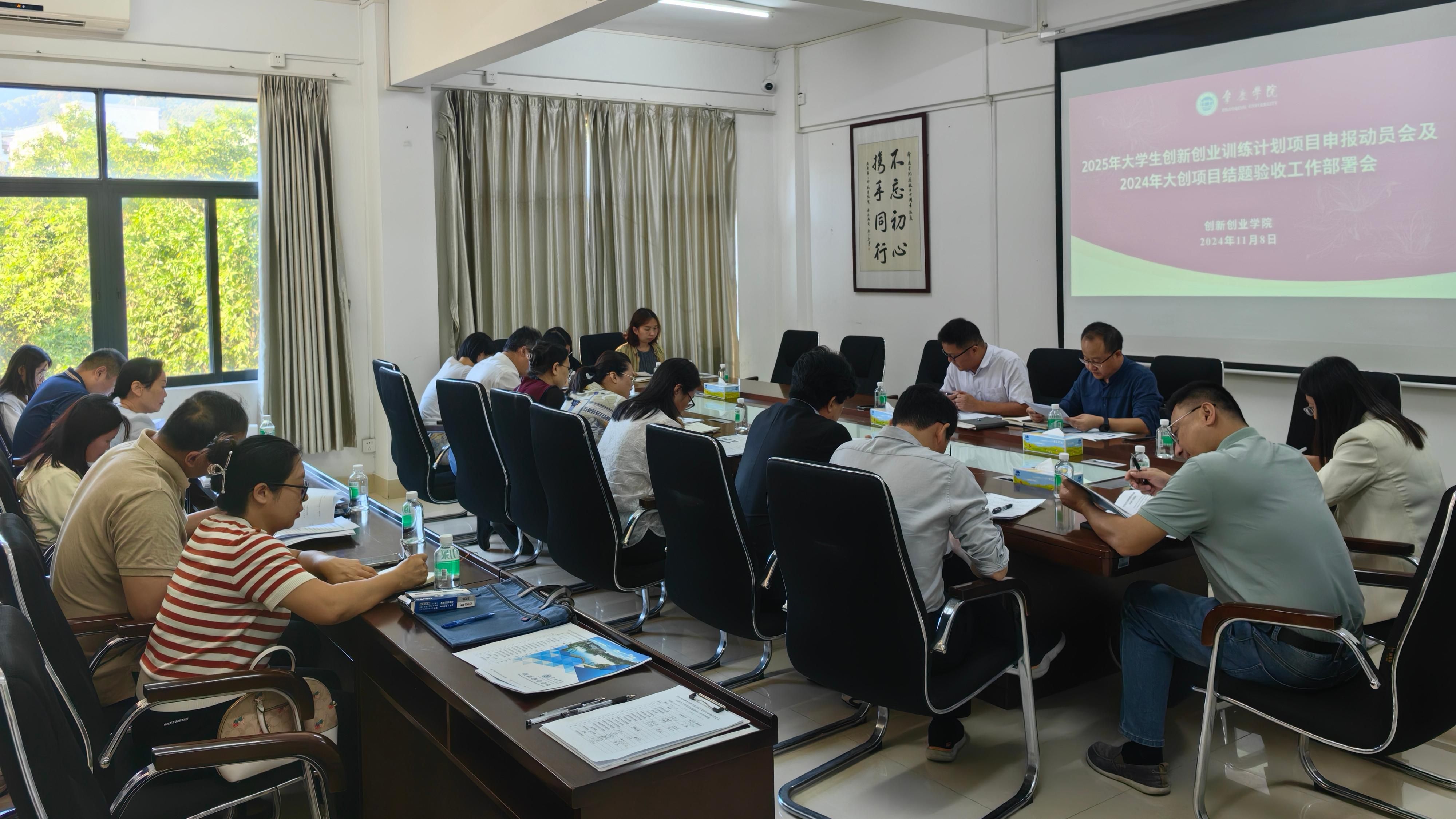 本网讯 近日,学校召开2025年大学生创新创业训练计划项目申报动员会及2024年大创项目结题验收工作会。创新创业学院、团委、各二级学院的分管领导、辅导员和教务员参加。