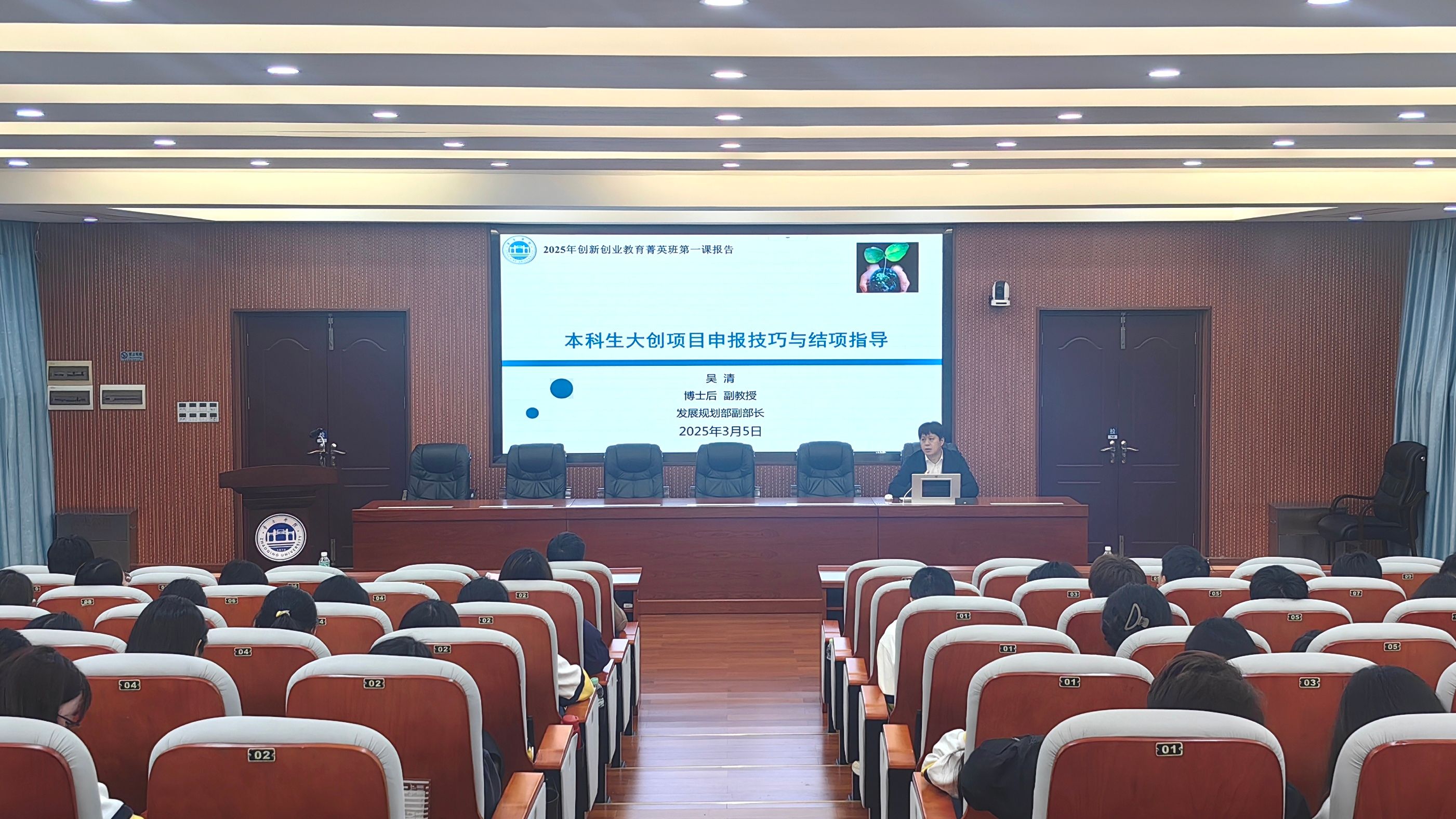 发展规划部主持工作副部长吴清作了《本科生大创项目申报技巧与结项指导》专题讲座。他结合典型案例从项目选题、材料撰写、项目实施等方面进行了讲解分析,为学员们提供了丰富的经验和指导。