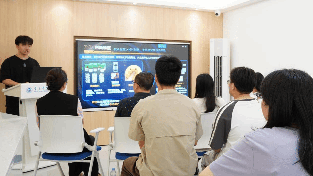 路演采用“5分钟展示+5分钟答辩”模式,各团队代表围绕问题痛点、创新成果、市场潜力,以及社会价值等展开阐述。评委组从创新性、可行性、发展前景、团队协作、参与主体等维度进行综合点评指导,针对技术优化的数据严谨性、运行模式的可持续性、路演表现的重点逻辑性与现场感染力等方面“把脉支招”。