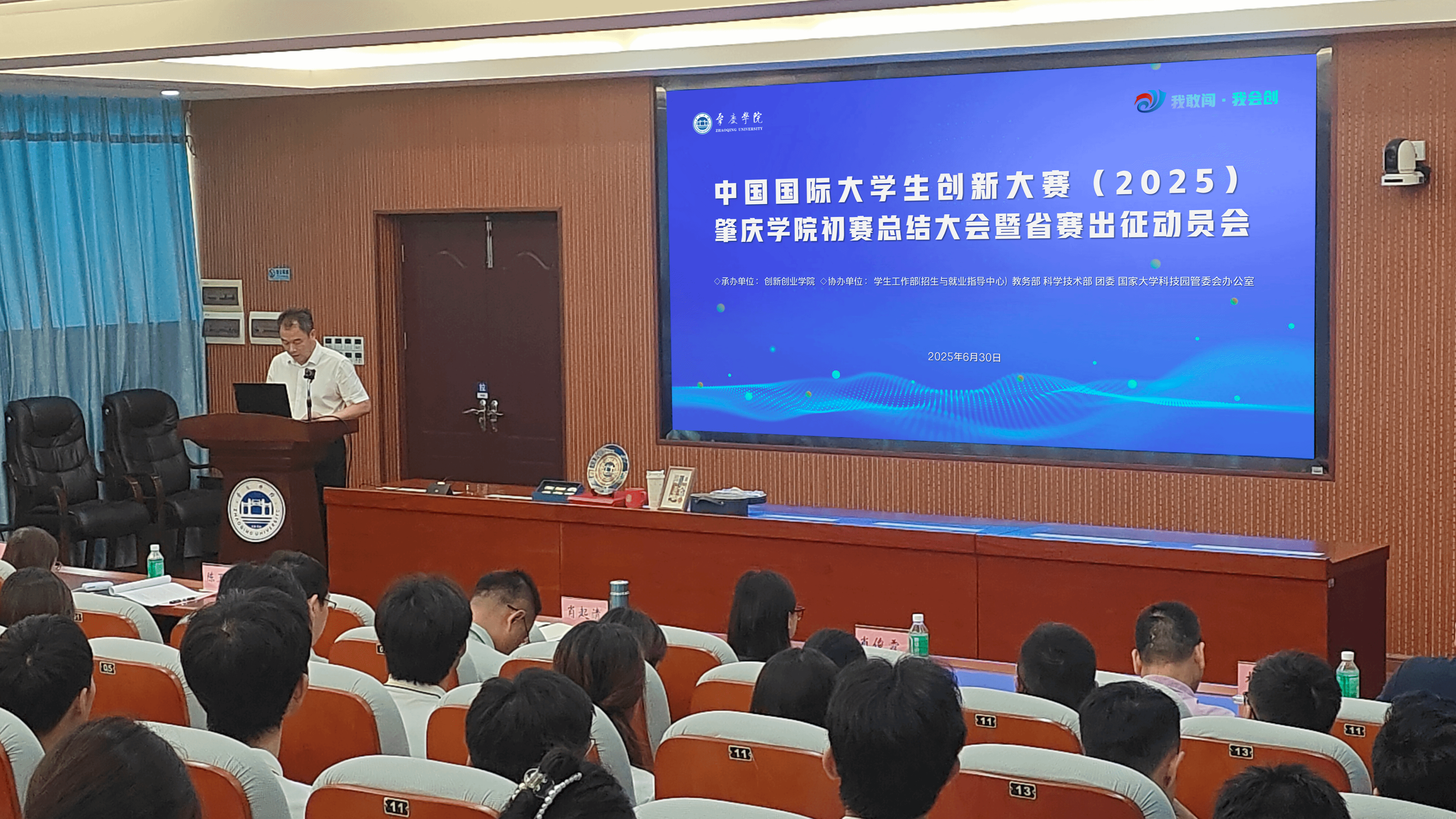 本网讯 6月30日,中国国际大学生创新大赛(2025)肇庆学院初赛总结大会暨省赛出征动员会举行。副校长肖起清出席,各有关单位负责人、教师代表、辅导员,获奖师生团队参加。