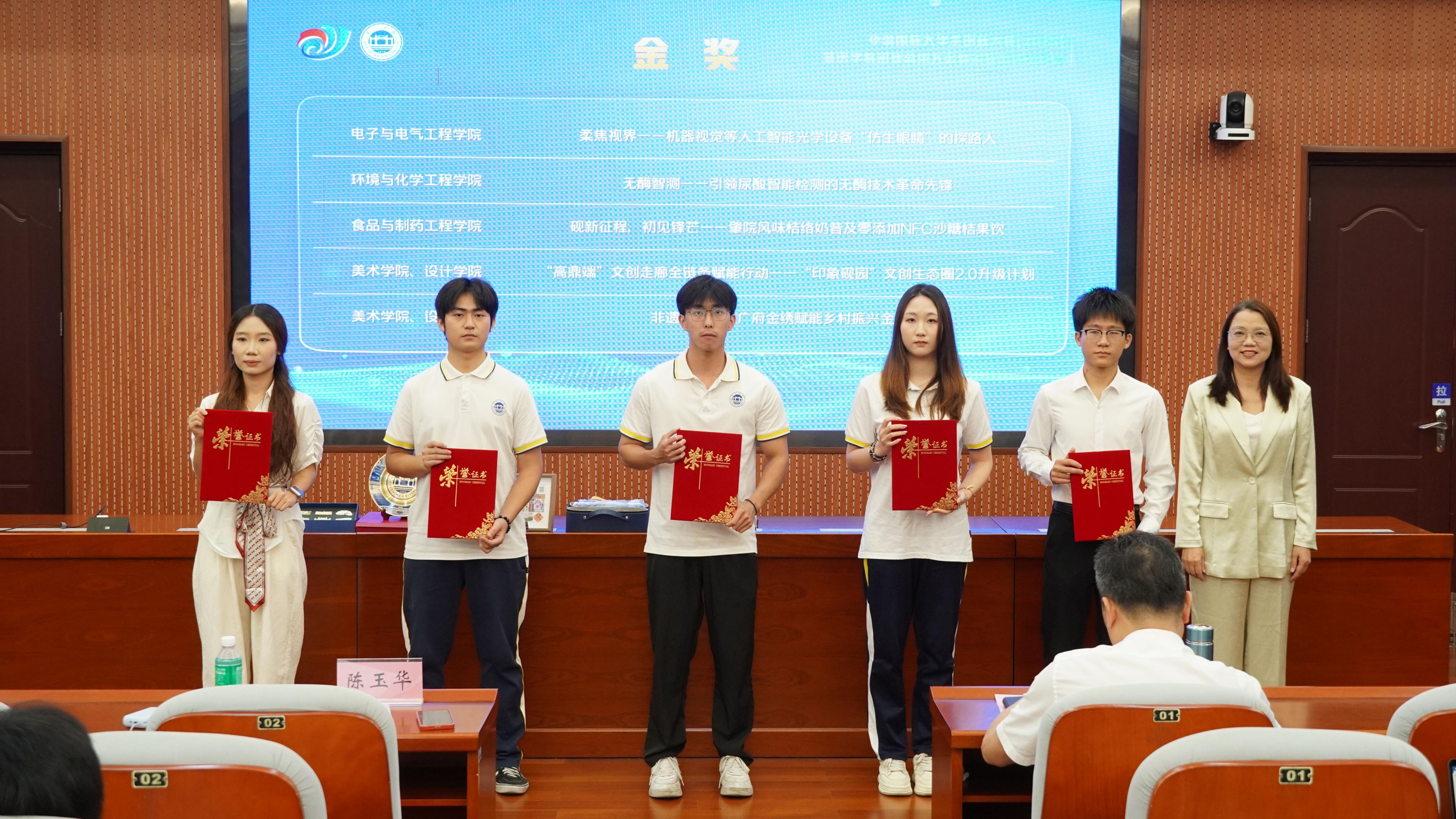 会上,优秀获奖项目代表进行汇报展示,分享了他们在化学检测、食品健康、文化创意等领域的创新成果。与会领导为校赛获得优秀指导教师、金奖、银奖、铜奖的项目团队颁发荣誉证书。